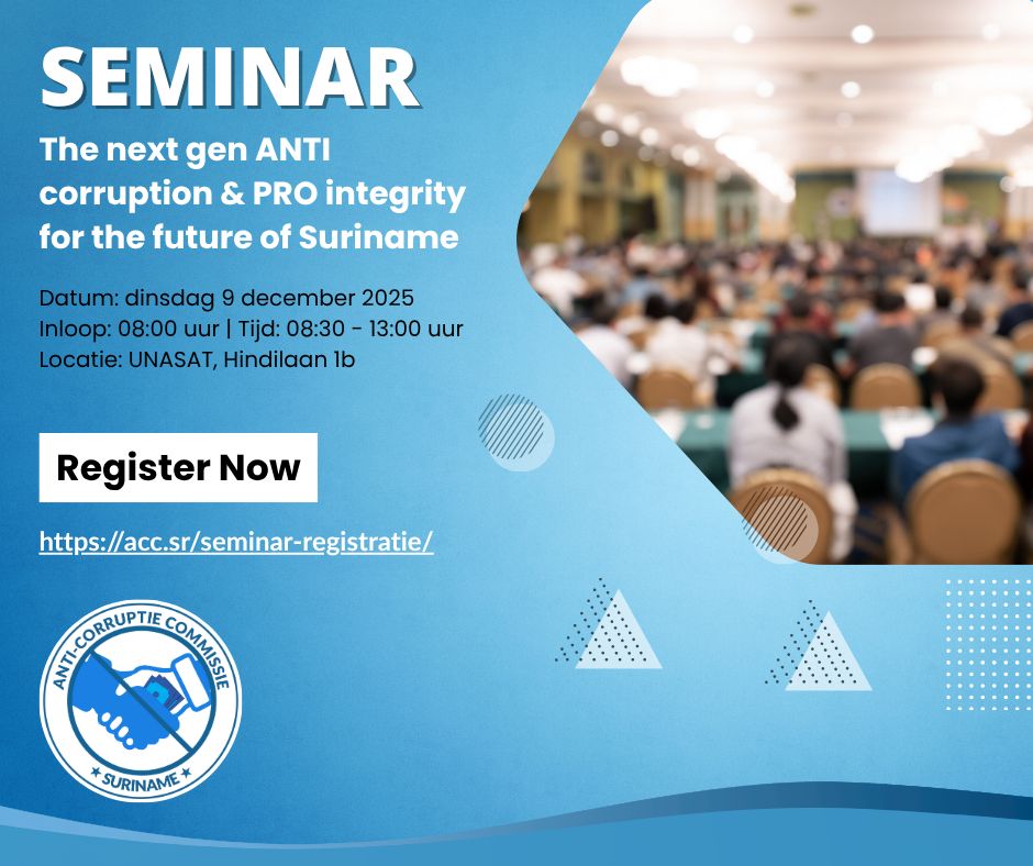 De eerste nieuwsbrief van de Anti-corruptie Commissie is uit! Klik hier Met deze nieuwsbrief zullen alle geïnteresseerden op de hoogte